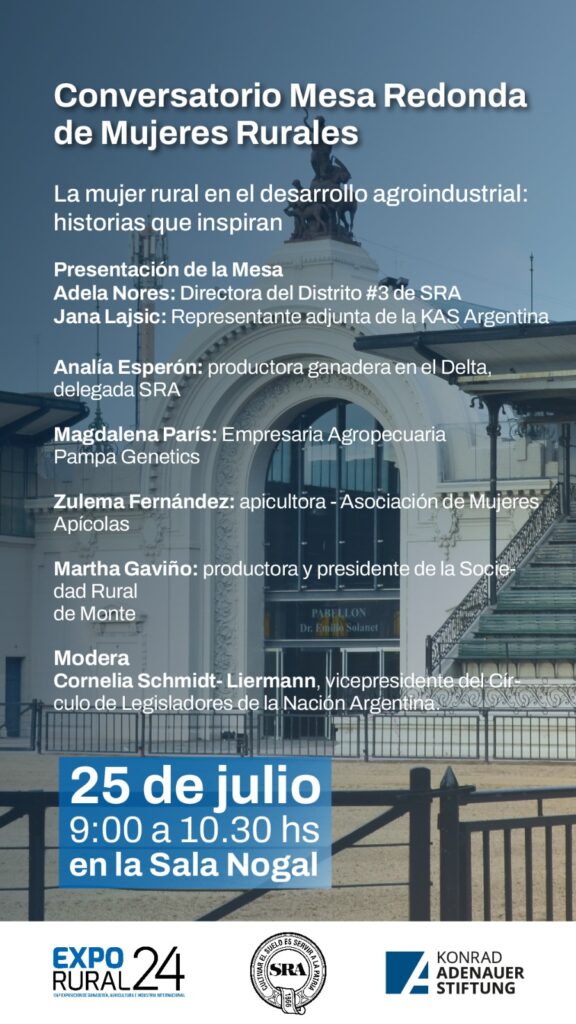 En dicho encuentrose se habló sobre la mujer rural en el desarrollo agroindustrial organizado por la Fundación Konrad Adenauer Argentina, donde las disertantes fueron Adela Nores y Jana Lajsic.
