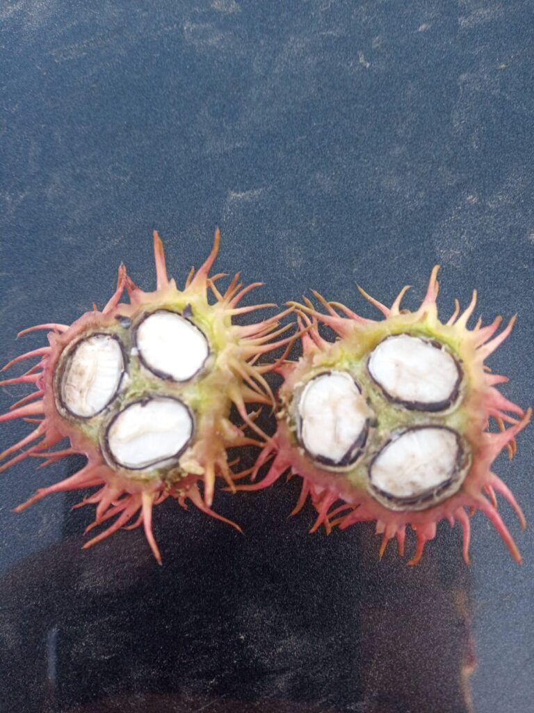 El grano tiene un 50% de aceite aproximadamente del cual cerca del 90% es AC. RICINOLEICO (C18:1).